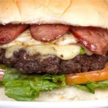 Ingredientes de cada hambúrguer: pão bola, carne, ovo, calabresa, queijo, presunto, batata palha, tomate, pepino e alface.