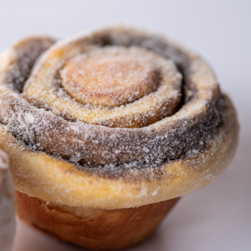 90g a uni. Massa de brioche recheada com canela, açúcar e um pouquinho de limão.