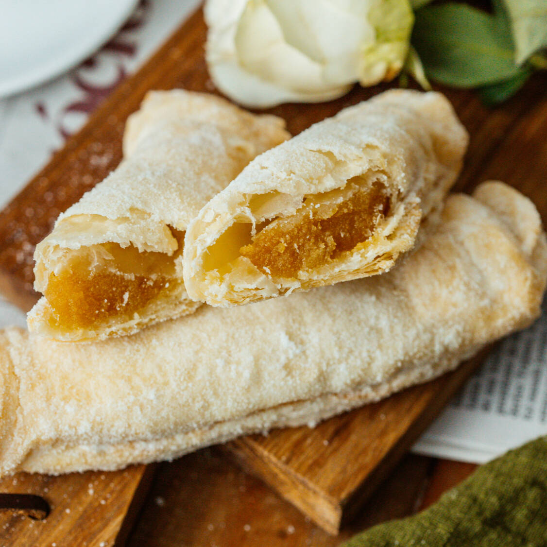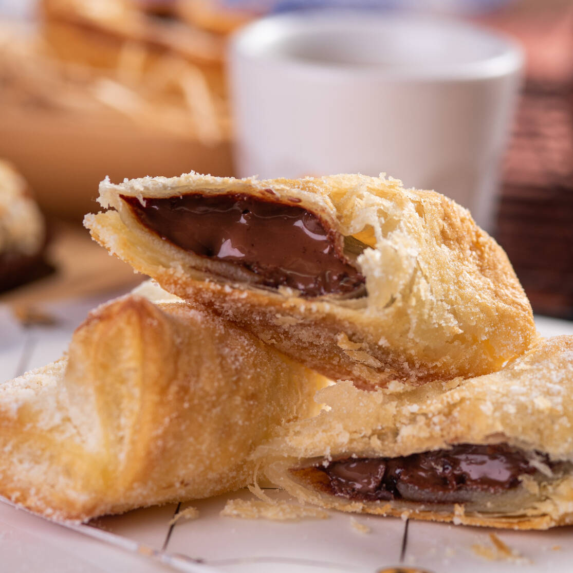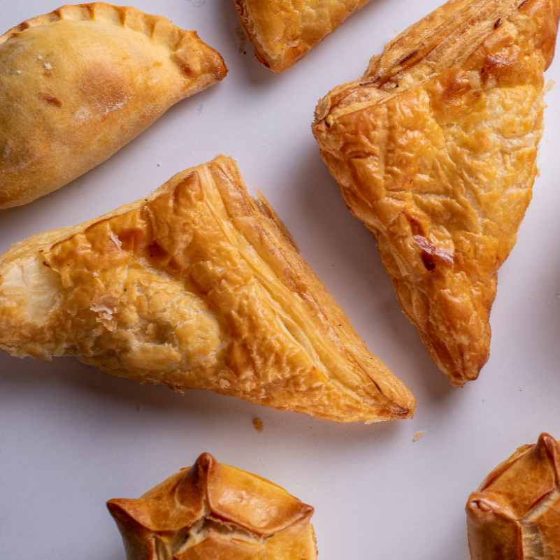 Massa folhada delicada com 3 opções de recheio.