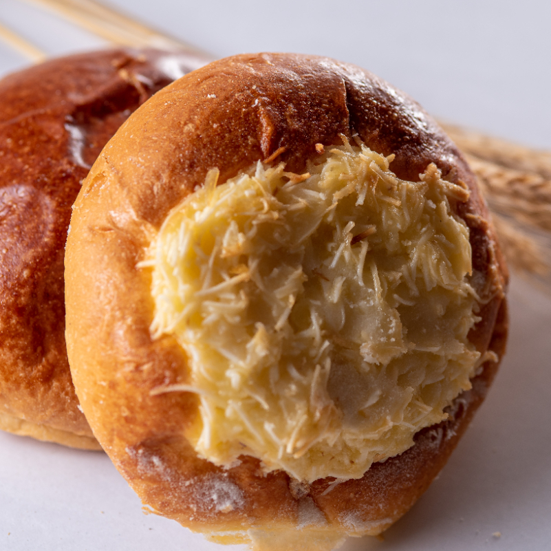 110g a unidade. A combinação de tradição portuguesa de fazer pão. É macio e coberto com coco. Apesar do doce, em Portugal é acompanhado de presunto e queijo.