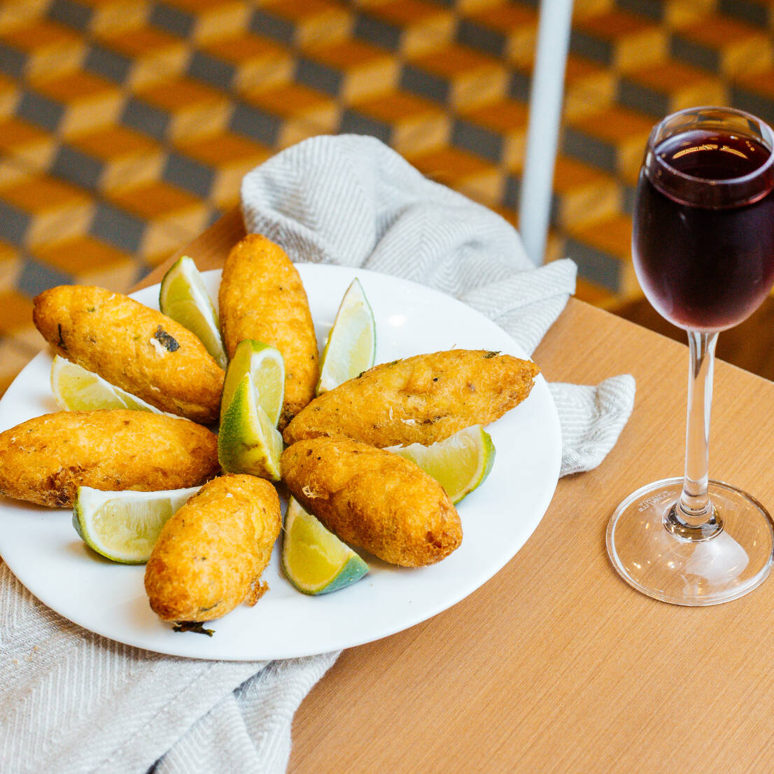Tradicional bolinho português, feito aqui com massa bacalhau do que tradicional.