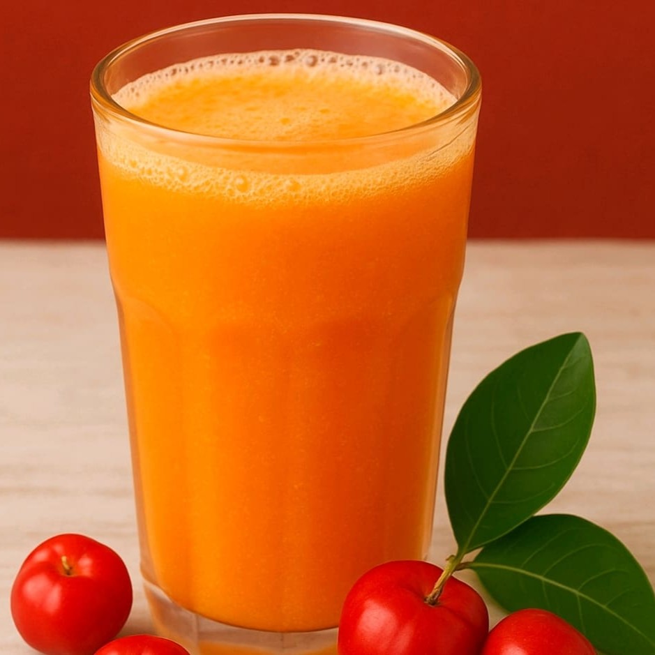 Suco natural de acerola, rico em vitamina C, refrescante e cheio de sabor! Perfeito para acompanhar sua refeição ou matar a sede com saúde. 100% natural e feito na hora!