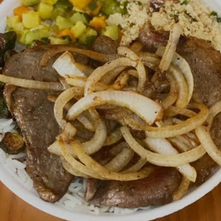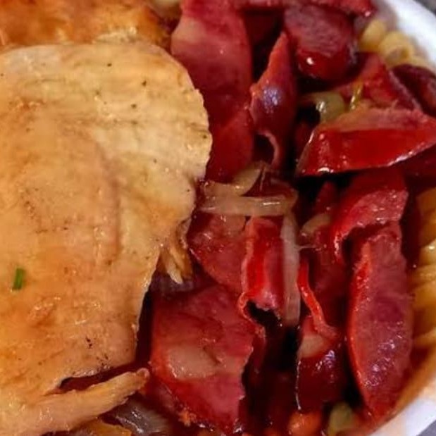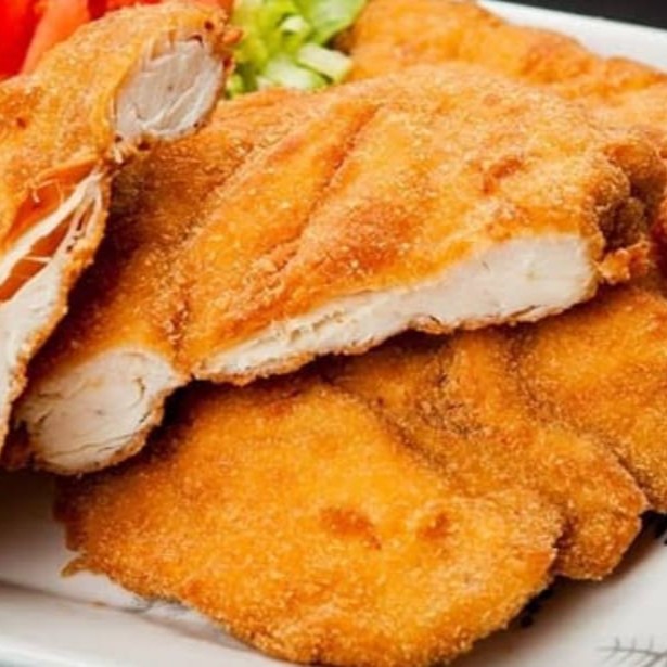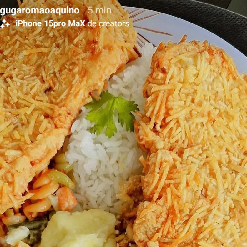 300g de filé de frango 300g de batata frita, farofa e molho rosé