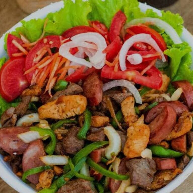 Pão, carne 180g, queijo, presunto, cheddar, calabresa, tomate e alface.