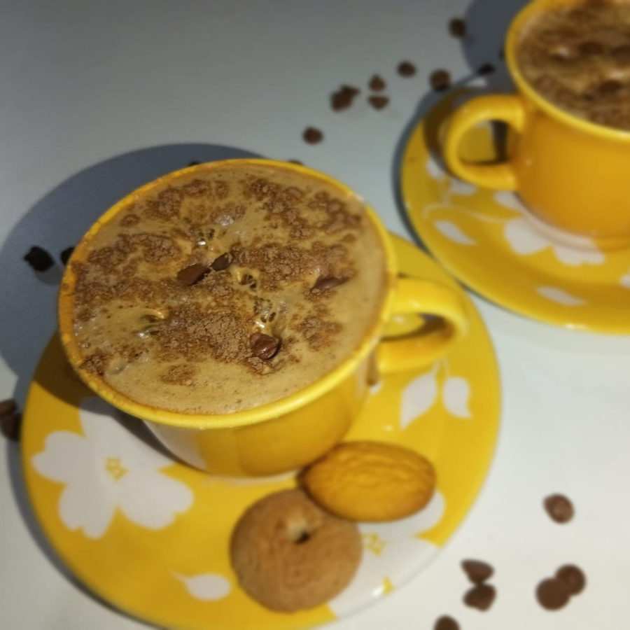 Capuccino gourmet artesanal com canela,gotas de chocolate acompanhado de deliciosos biscoitos