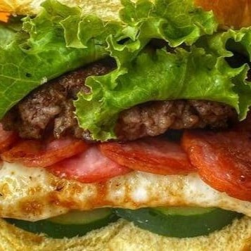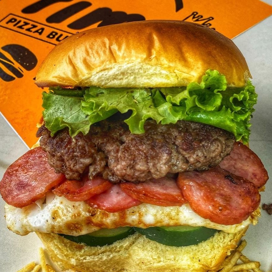 Pão bola, carne 80g, ovo, calabresa, pepino, alface e batata palha!