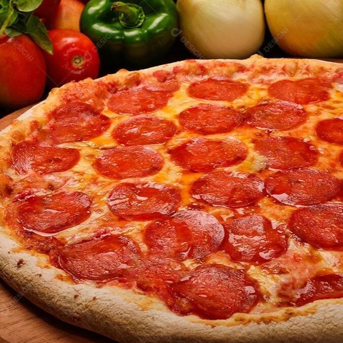 Calabresa, queijo mussarela, cebola, azeitona, orégano e molho especial de tomate com ervas finas.