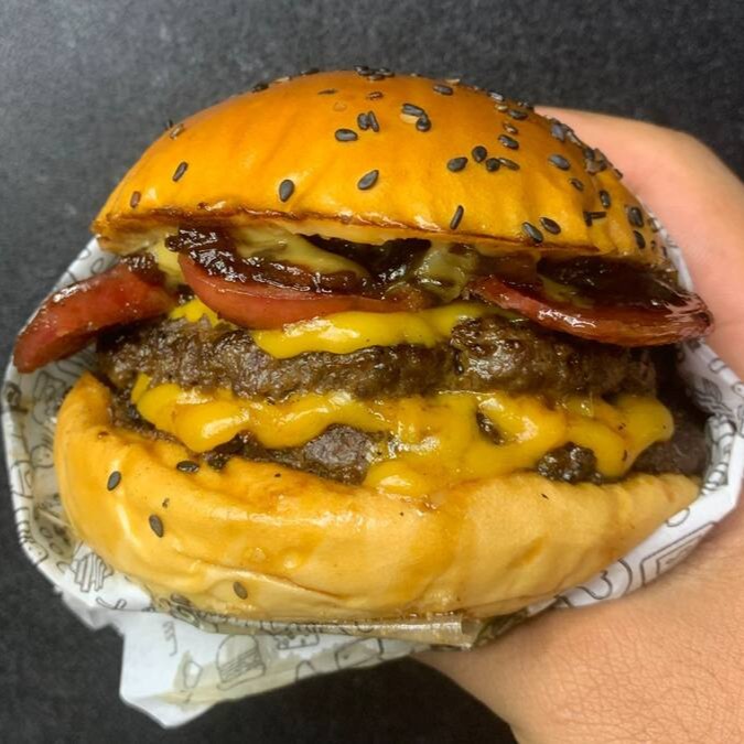 Pão com gergelim, blend 120g, bacon, queijo cheddar, molho mac, tomate e alface.