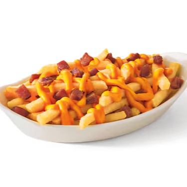 250g de batata, bacon em cubos e molho cheddar.