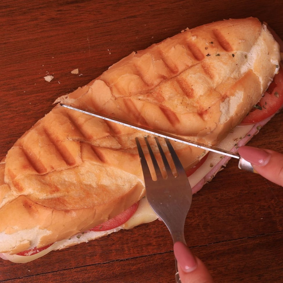 Pão Italiano recheado com presunto, queijo e tomate.