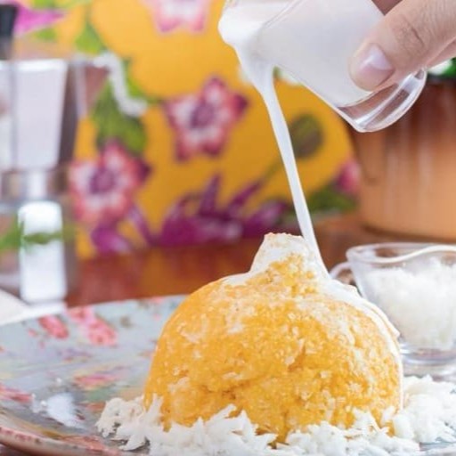 Massa de cuscuz com recheio de leite condensado ou sem (opção vegana), leite de coco e coco ralado