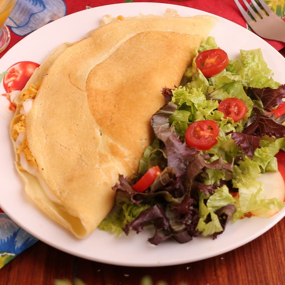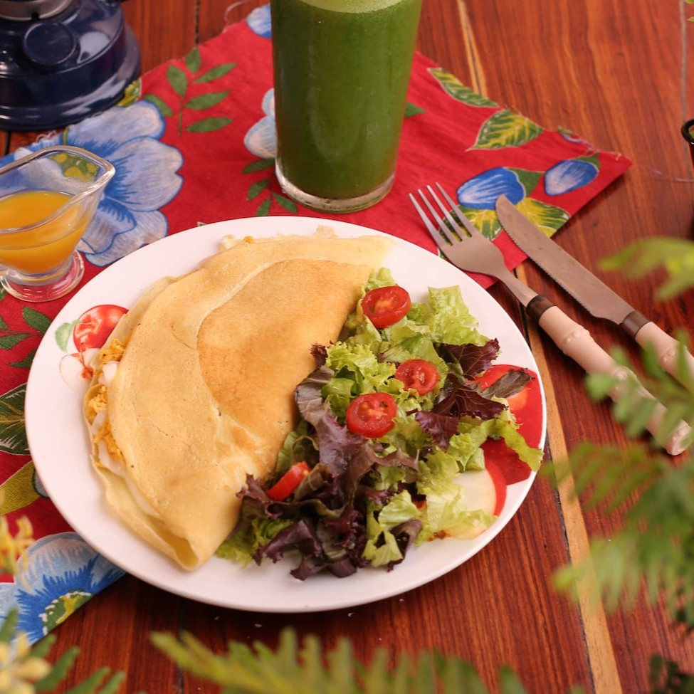 Crepioca de Queijo e Presunto e mix de folhas