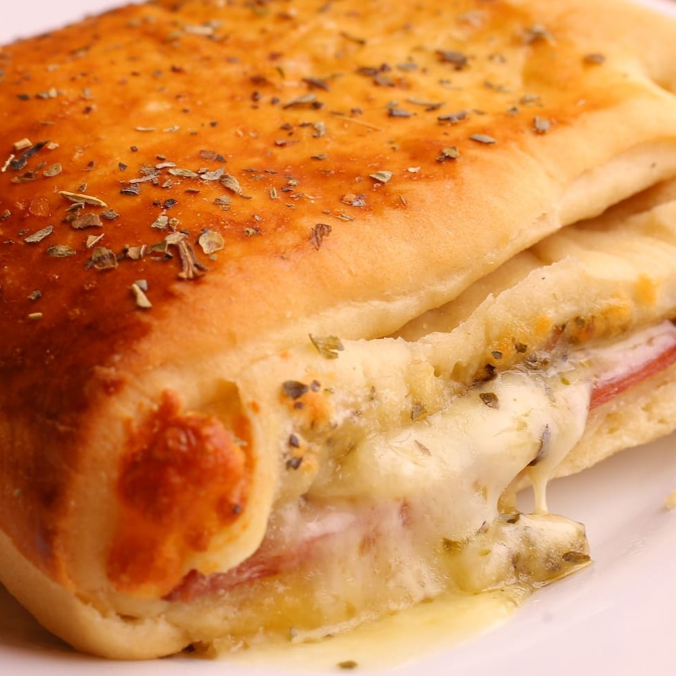 Folhado de Queijo mussarela e presunto com Catupiry e molho com orégano