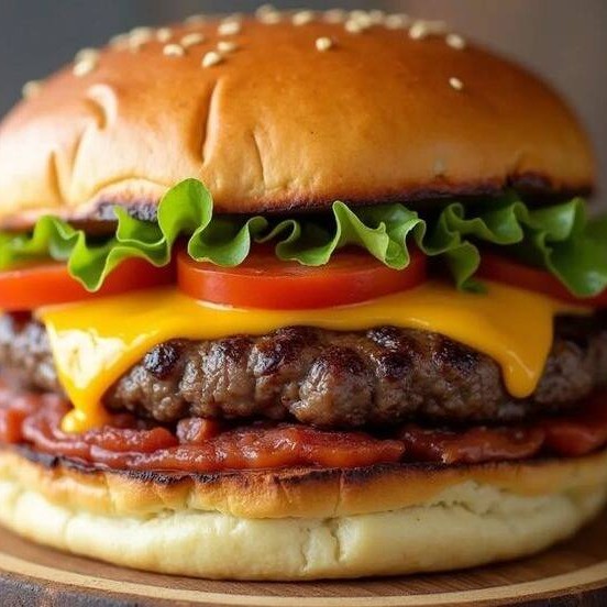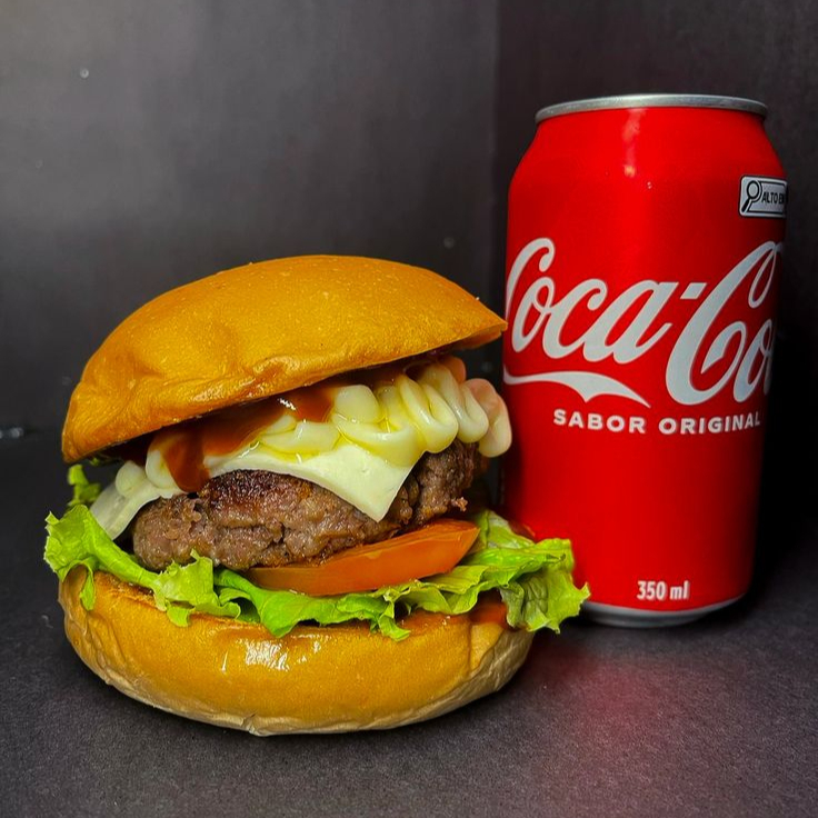 Pão, 2 carnes, 2 mussarelas, presunto, salada, barbecue e molhos tradicionais