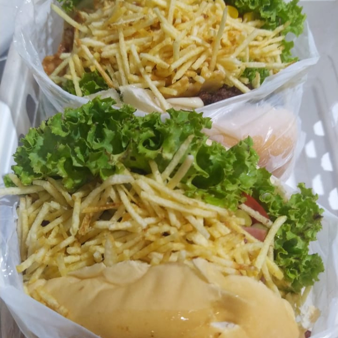 PÃO, 2 CARNE, 2 OVO, CALABRESA, 2 PRESUNTO, 2 SALADA, MILHO, ERVILHA E BATATA PALHA