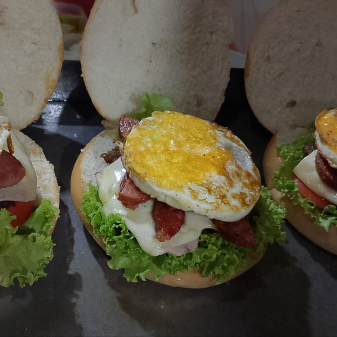 Pão, carne, ovo, queijo, presunto, calabresa, salada