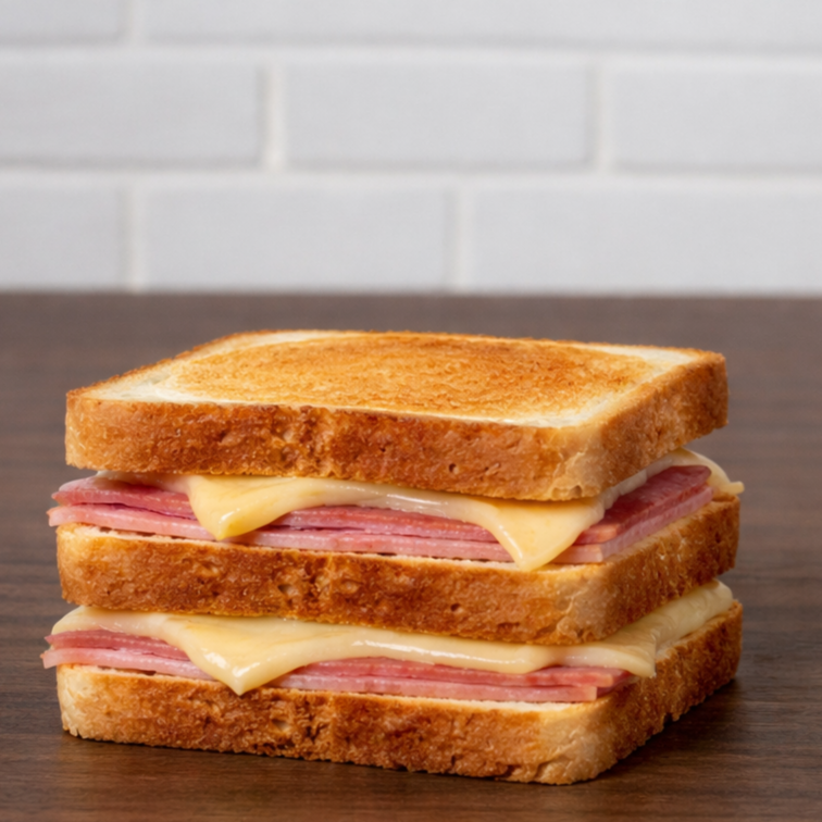 02 pão de forma, queijo, presunto