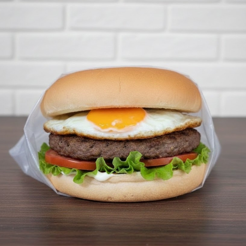Pão, carne, ovo e salada