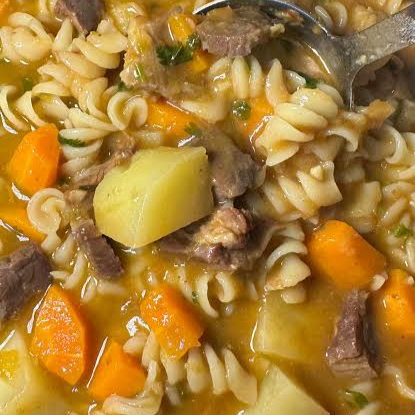 Sopa de carne, com legumes. Servido em porçao de 500 ml.