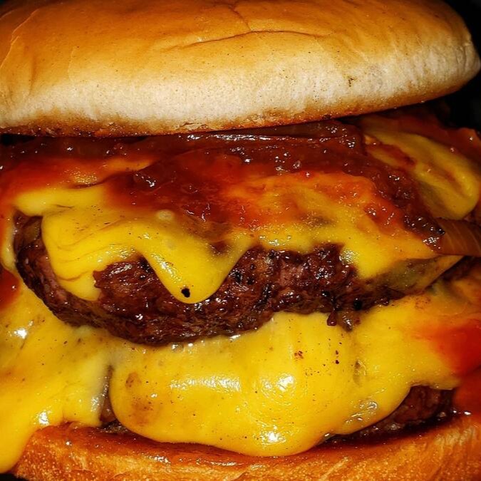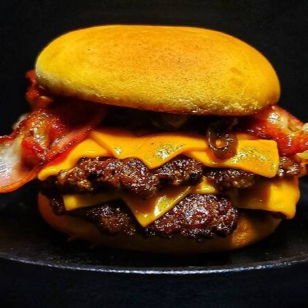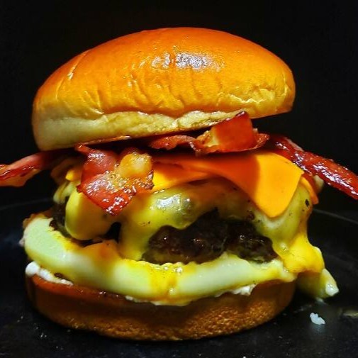 2 blends de 100g amassados na chapa, cebola caramelizada, bacon, maionese da casa e queijo cheddar.