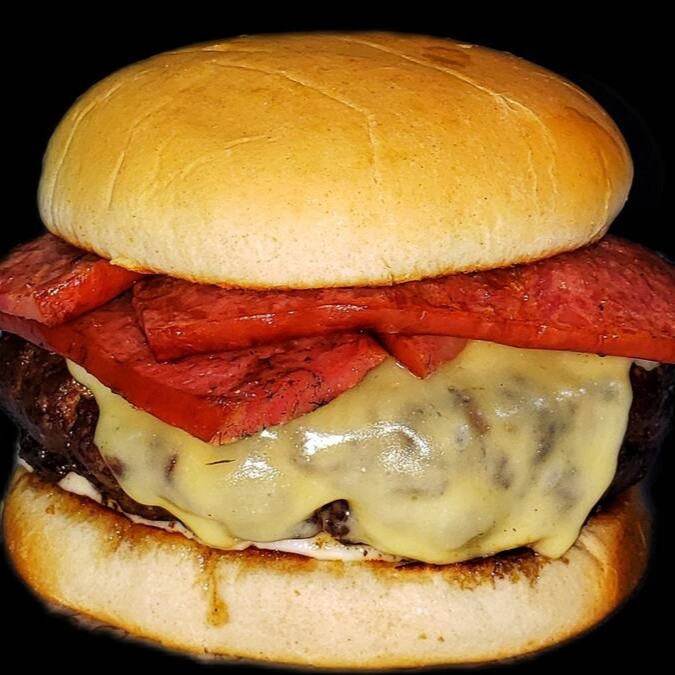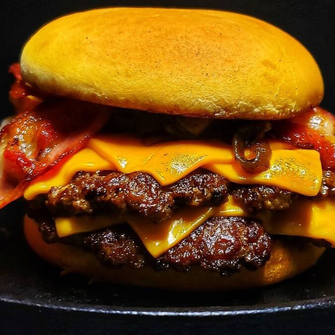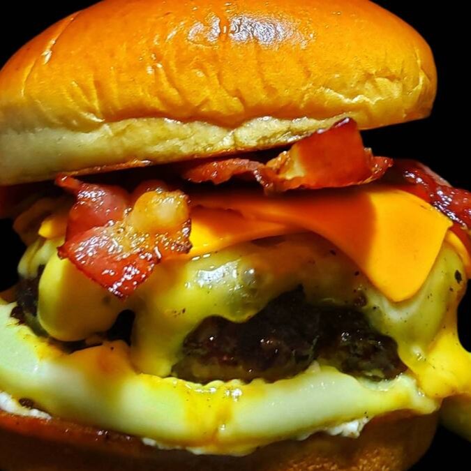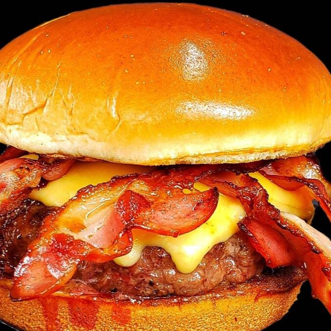 2 blends de 100g amassados na chapa, cebola caramelizada, bacon, maionese da casa e queijo cheddar.