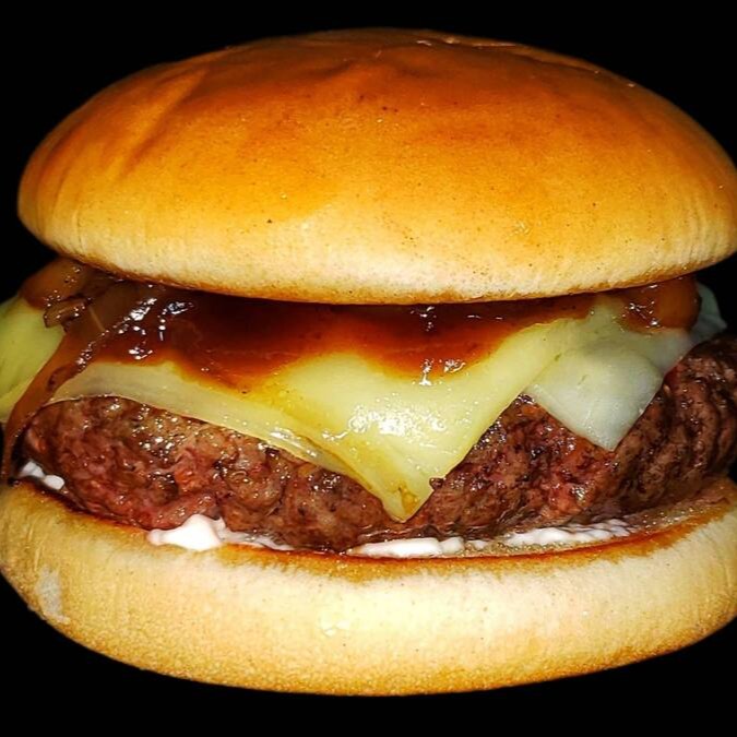 Blend de 180g feito na parrilla, queijo muçarela de búfala, cebola caramelizada, molho barbecue e nossa maionese caseira, servido em um pão riviera levemente tostado.