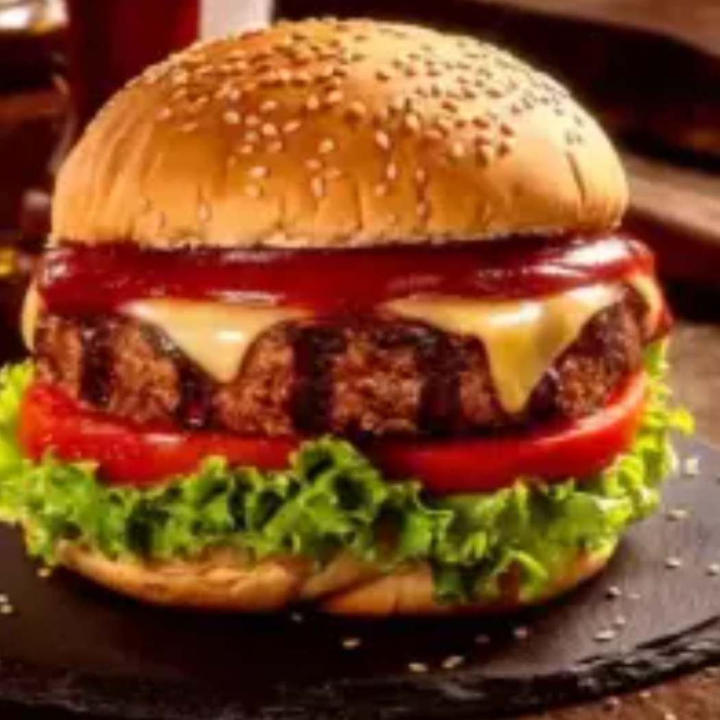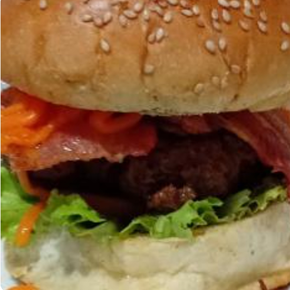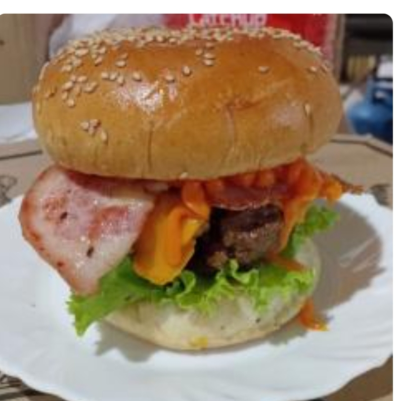Carne. 180 g ; bacon, queijo cheddar cebola caramelizada e cheddar