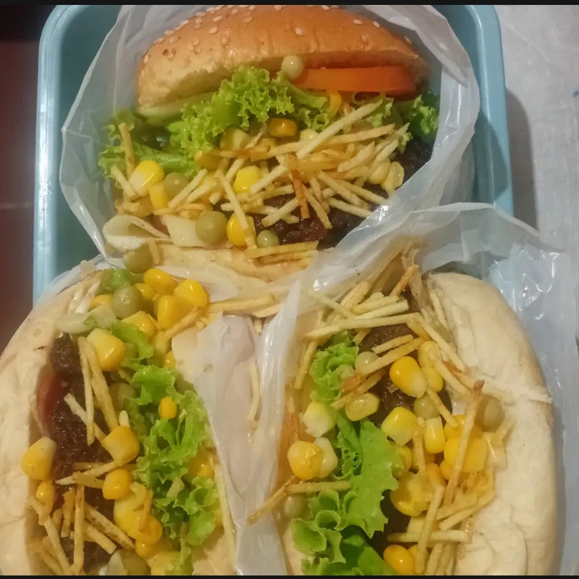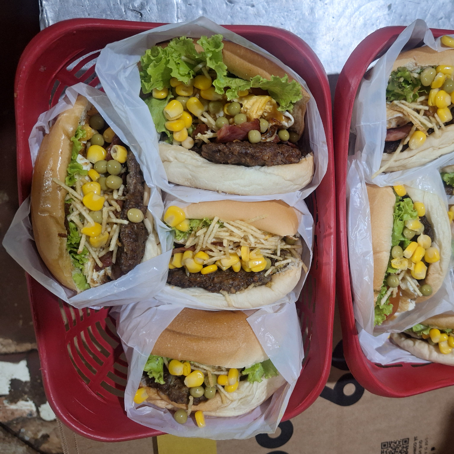 3 hambúrgueres especial carne ovo calabresa milho ervilha salada e batata palha+ refri de 1 l