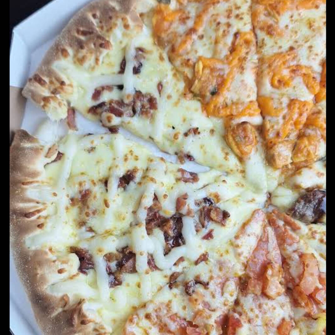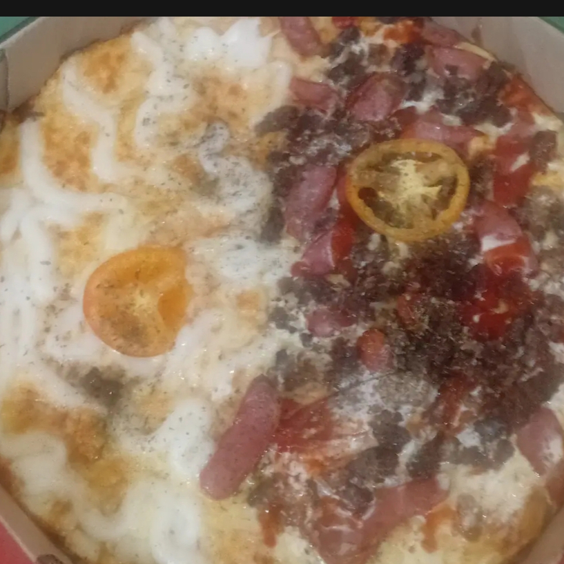 2 mega especial carne ovo calabresa milho ervilha salada e batata palha+. Refri de 1 litro
