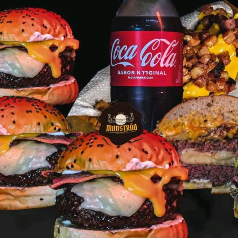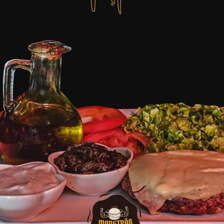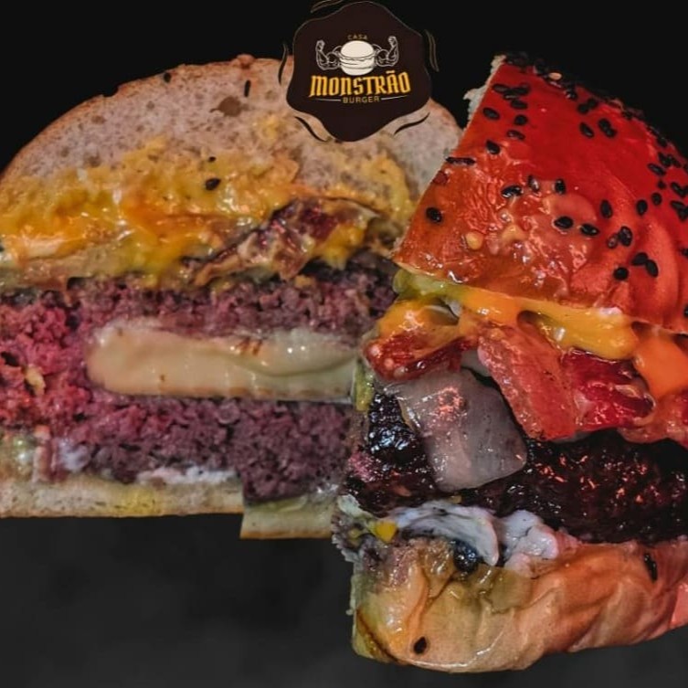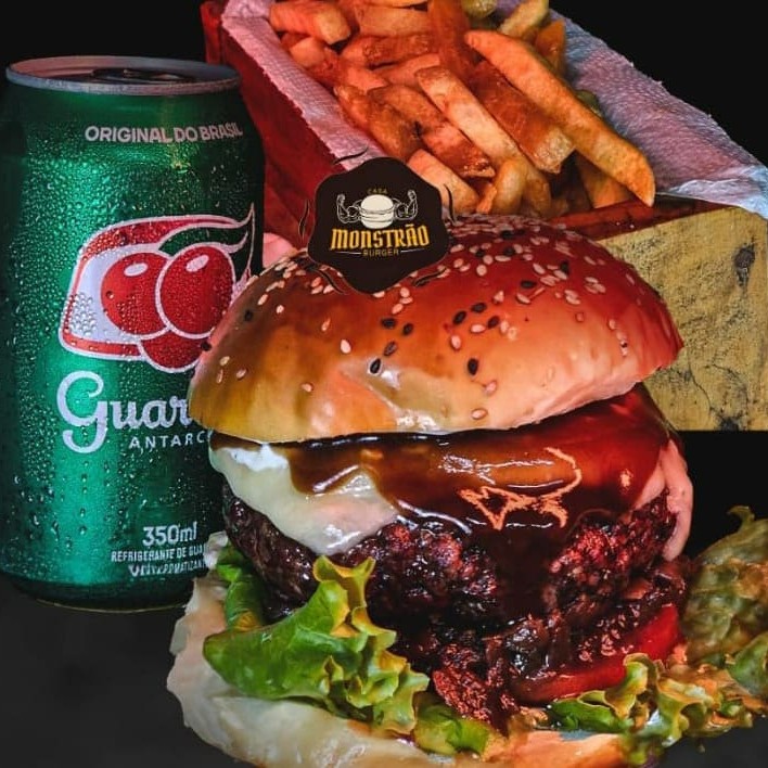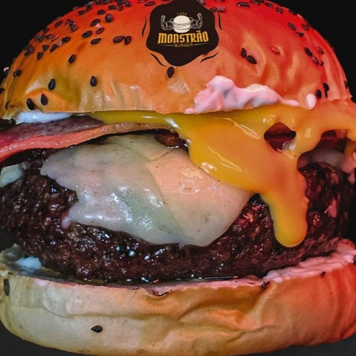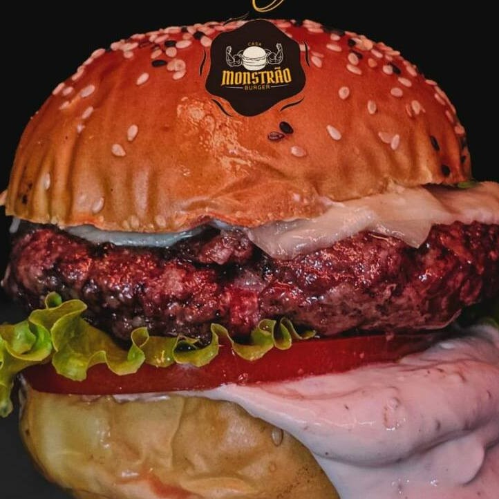 O 'Monstro Burguer' é uma criação exclusiva da nossa hamburgueria artesanal. Este prato exuberante é composto por um pão especial, escolhido cuidadosamente para complementar perfeitamente o suculento hambúrguer artesanal. A estrela do prato, nossa lâmina de carne de 150g, é assada meticulosamente na brasa, proporcionando um sabor defumado irresistível. Acrescentamos uma generosa fatia de queijo derretido e uma crocante salada fresca para equilibrar os sabores. E para finalizar, nosso toque especial, um molho de alho caseiro que eleva o sabor do hambúrguer a outro nível. Uma verdadeira explosão de sabores!