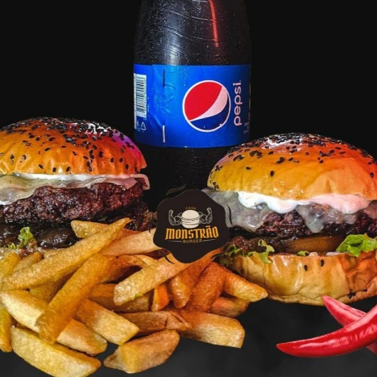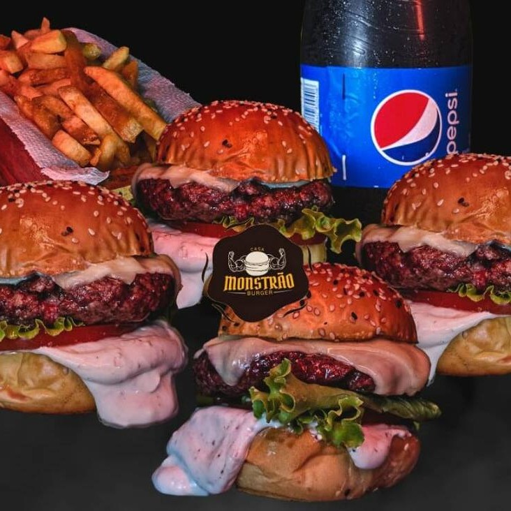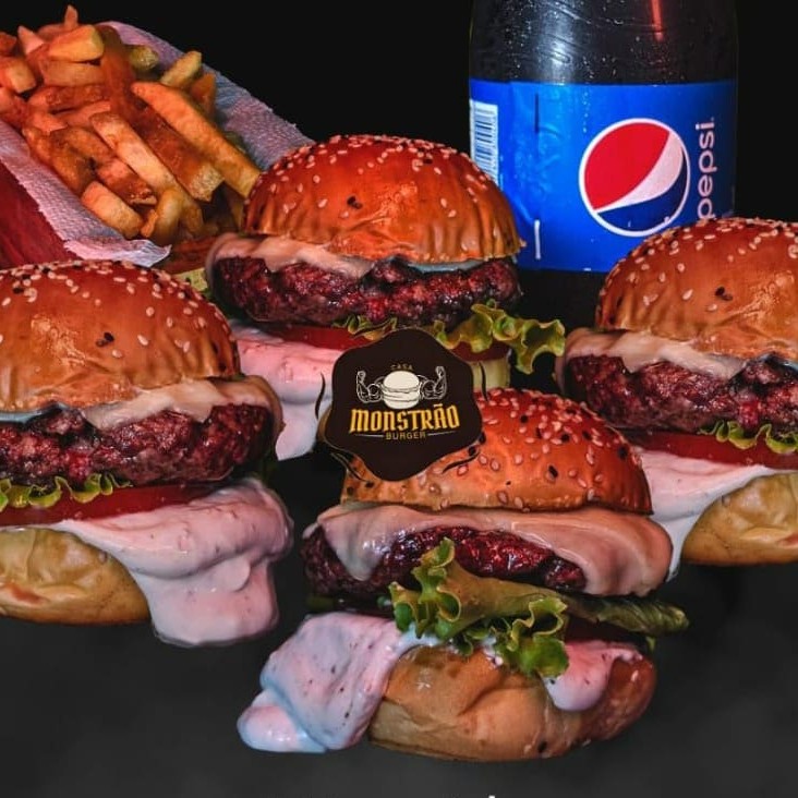 4 Monstro burger+batata de 150g+Guaraná ou Pepsi litro