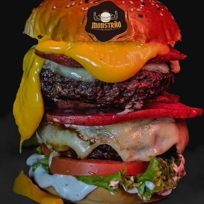 O 'Big Monstro' é um hambúrguer artesanal da mais alta qualidade. Com um pão especializado, é recheado com um blend de 170g de carne assada cuidadosamente selecionada. O toque final é dado pela adição de uma salada fresca e crocante, uma camada generosa de queijo derretido, e o irresistível sabor de um molho barbecue supremo. A cebola caramelizada e o exótico molho de alho acrescentam uma pitada de sofisticação ao prato. Este hambúrguer é uma verdadeira explosão de sabores, perfeita para os amantes da boa culinária.
