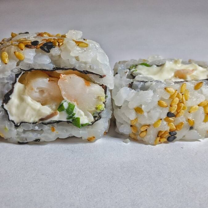 Camarão, cream cheese, cebolinha, gergelim e molho tarê