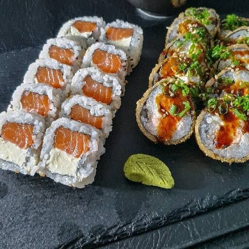 10 hot salmão Filadélfia e 10 Uramaki salmão Filadélfia