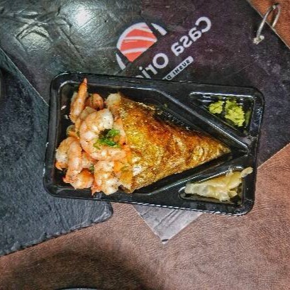 5 uramaki salmão filadélfia, 5 uramaki camarão especial, 5 uramaki black, 5 sashimi crispy, 1 joe fusão, 1 joe camarão flambado, 1 harumaki casa oriental