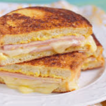 Pão, queijo e presunto.