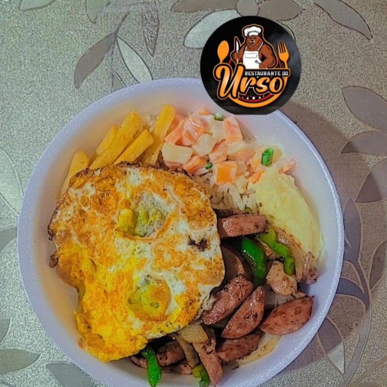 Guarnições: Arroz, Salada, Farofa, Purê de Batata , Ovo e Batata Frita.