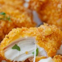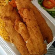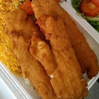 Filé de peixe frito recheado com camarão regional, acompanhado de arroz a grega e batata palha!