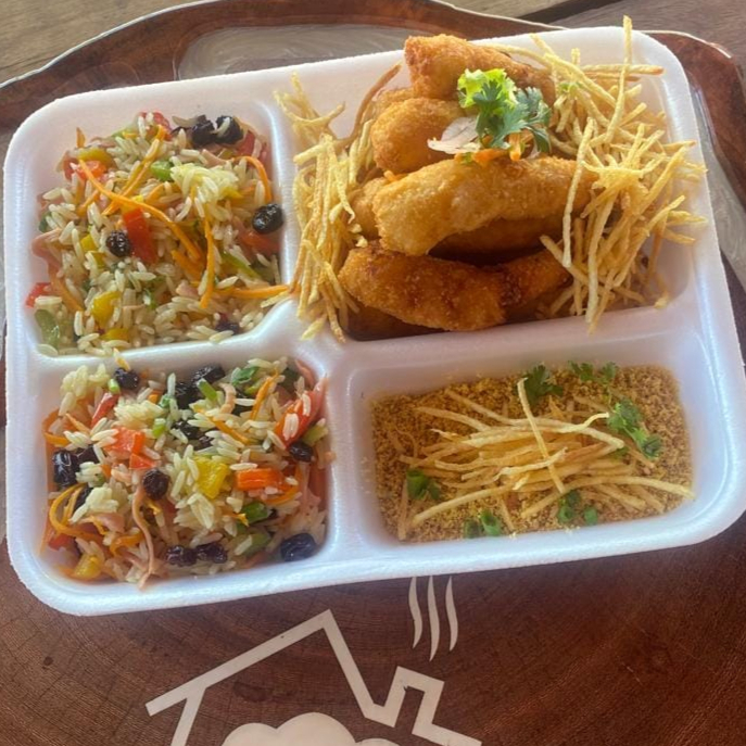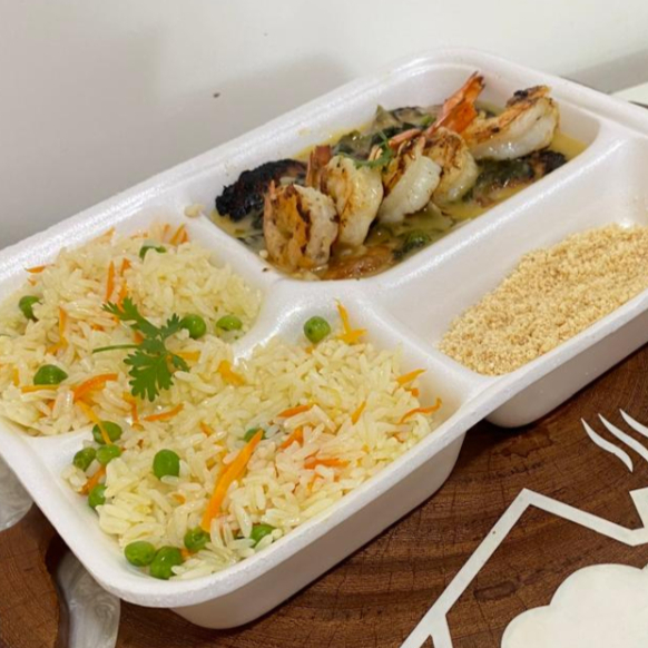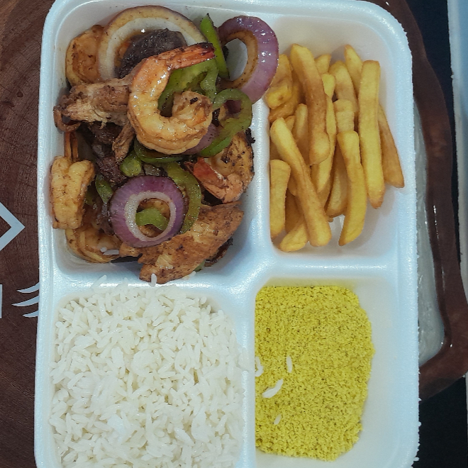 Uma combinação perfeita de camarão rosa suculento , filé mignon e filé de peixe grelhado, tudo preparado na chapa com temperos especiais da chefe em casa. Um prato completo, saboroso e cheio de personalidade. Servido com fritas, arroz, feijão e farofa