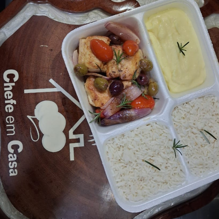Um prato autoral que celebra os sabores de nossa cozinha: Filhote delicadamente preparado, envolvido em mandeiga de ervas aromáticas, acompanhado de tomate cereja, azeitona verde e roxa e toque de cebola roxa, finalizado com alecrim fresco que realça cada sabor. Servido com purê e arroz branco soltinho, trazendo equilibrio e sofisticação a cada garfada.