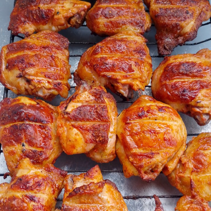Frango Assado, Arroz, Feijão, Macarrão, Farofa e Salada