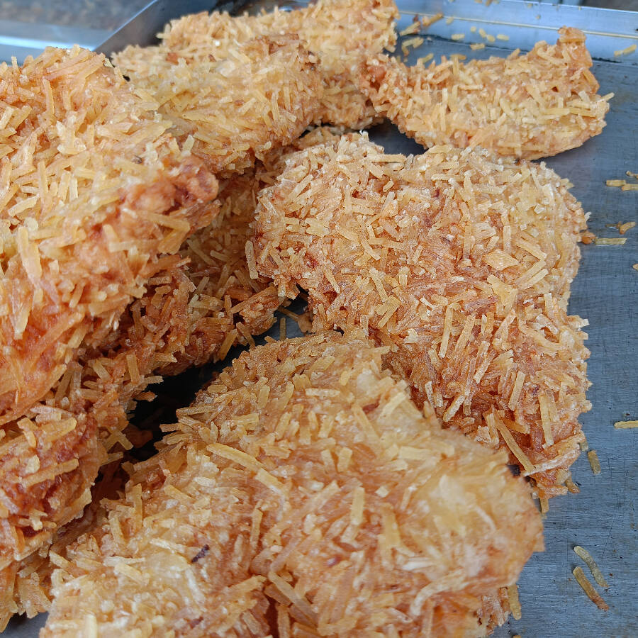 Peixe Crocante, Arroz, Feijão, Macarrão, Farofa e Salada
