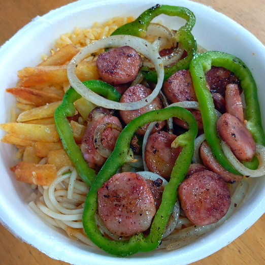 Acompanha farofa, salada , arroz ,macarrão e feijão