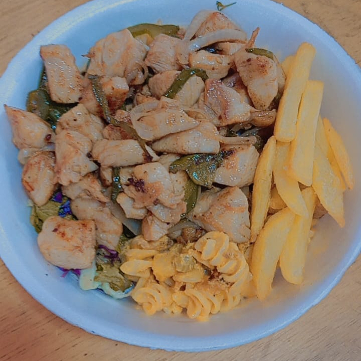 Acompanha farofa, salada , arroz ,macarrão e feijão