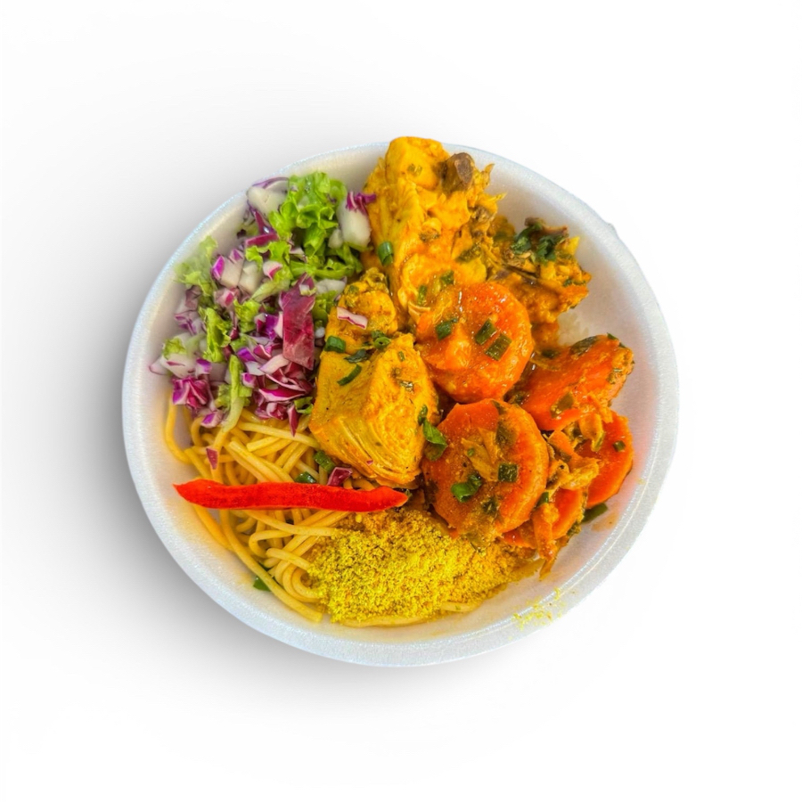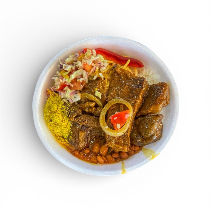 Acompanhamento: arroz, feijão, macarrão, farofa e a salada da casa