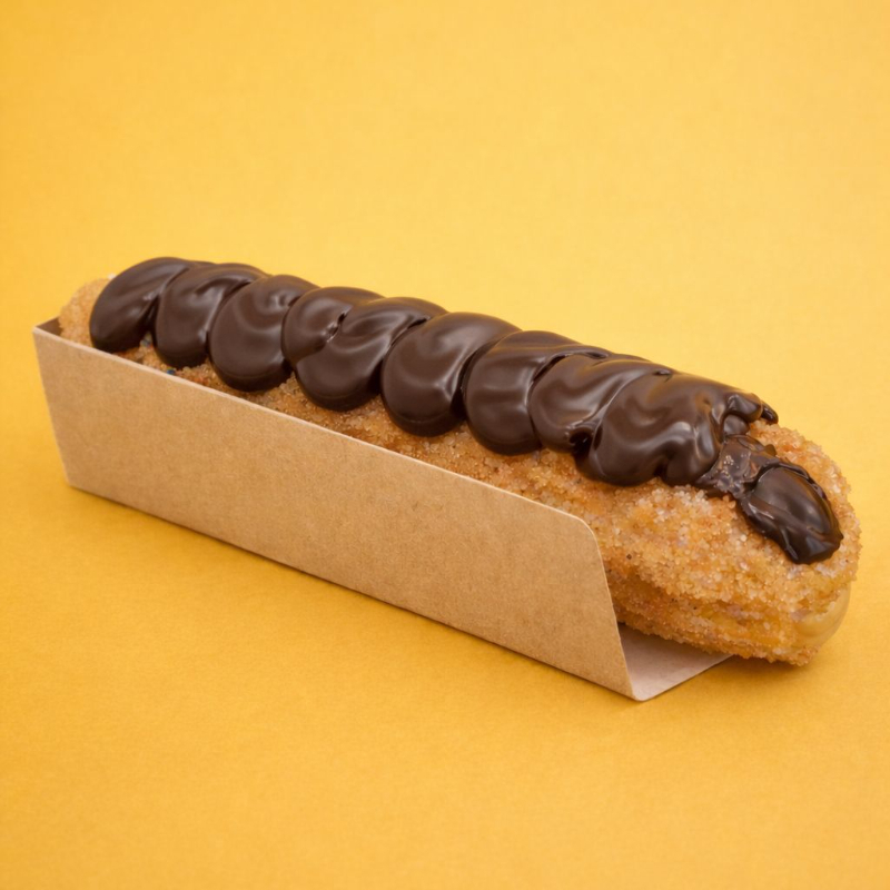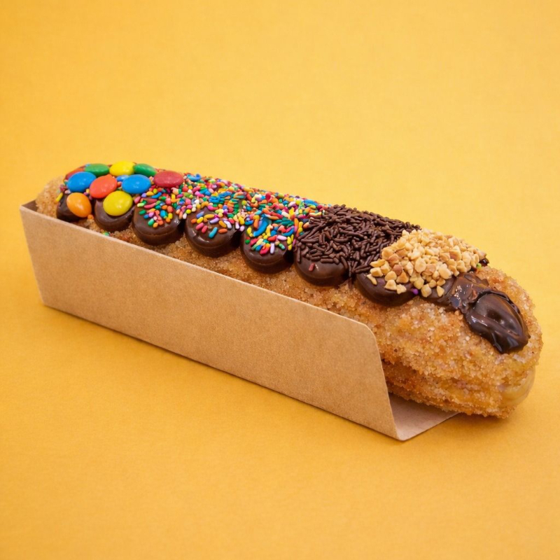 Churros com recheio e cobertura de chocolate + granulados à sua escolha