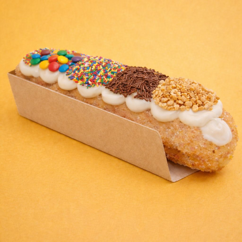 Churros com recheio e cobertura de cupuaçu + granulados à sua escolha