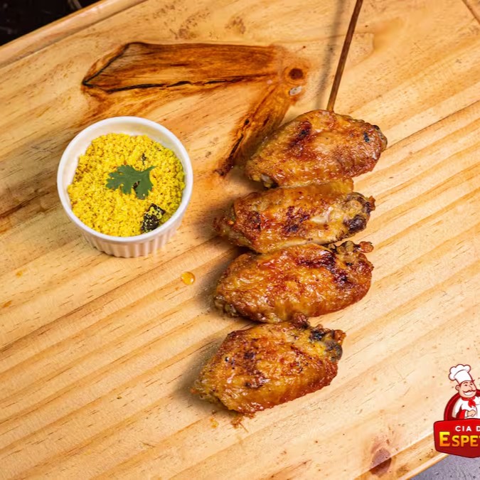 Espeto de Tulipa, acompanha farofa e molho de alho