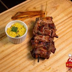 Espeto de costela suina,prato individual,escolha sua opção de acompanhamento.