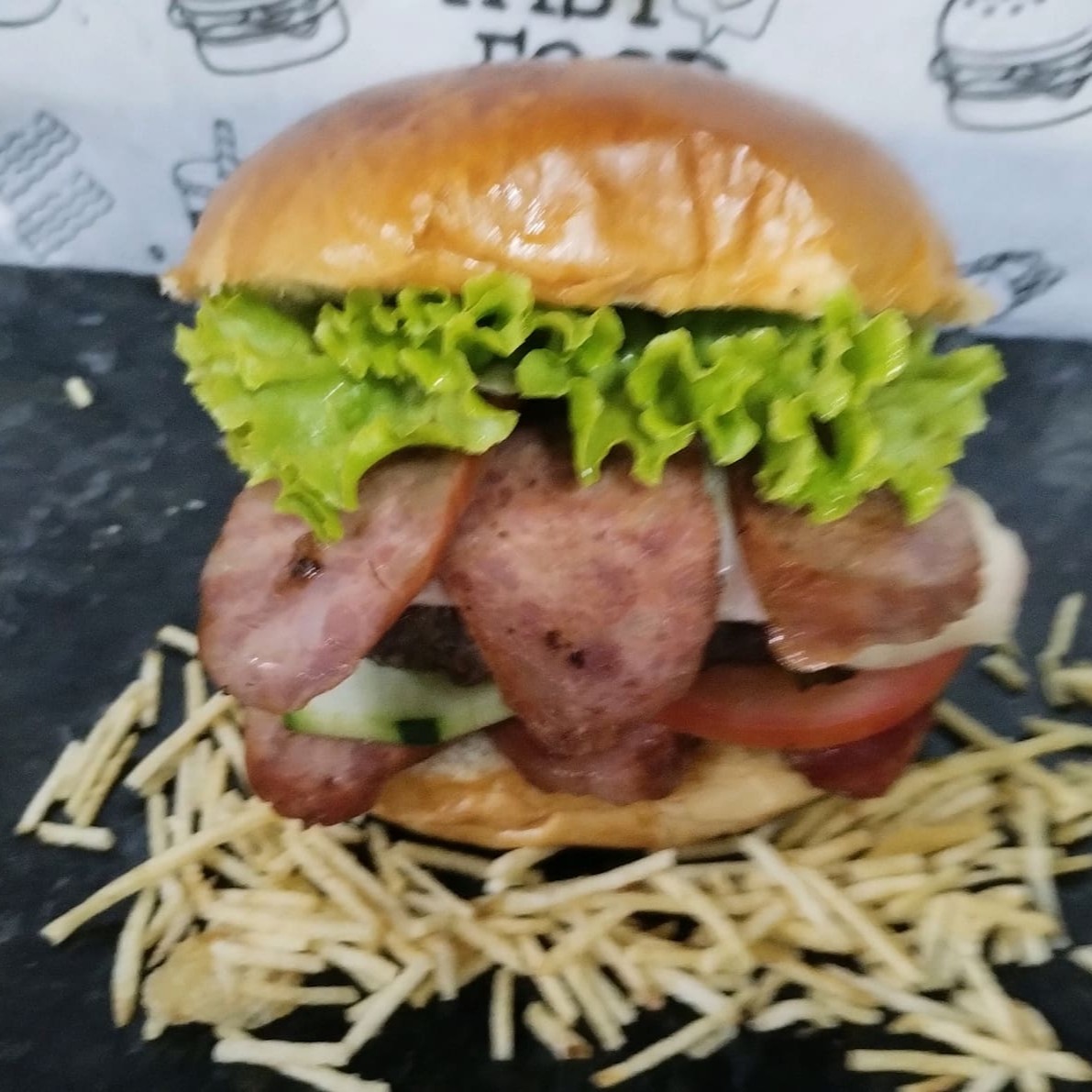 Carne 120gm queijo, presunto,calabresa, Bacon,salada batata palha